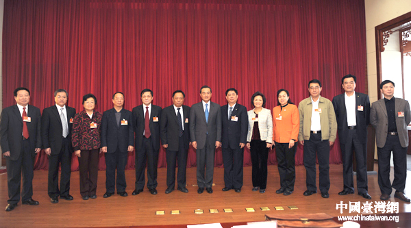 3月8日上午,中共中央臺辦、國務(wù)院臺辦主任王毅應(yīng)邀出席了十一屆全國人大四次會議臺灣代表團全體會議,并與代表們合影。(中國臺灣網(wǎng) 王偉 攝)