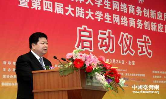 國臺辦主任助理龍明彪在“首屆海峽兩岸大學生網絡商務創新應用大賽暨第四屆大陸大學生網絡商務創新應用大賽”啟動儀式上致辭(中國臺灣網 普燕 攝)