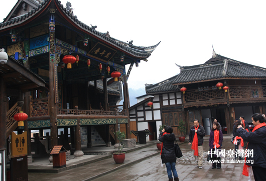 始建于1588年的戲臺是古鎮的重要建筑,地震中被夷為平地,如今仿古重建了新的戲樓,晚上小伙子們又可以在這里跳起鍋莊舞。 (中國臺灣網 蕪同 攝)