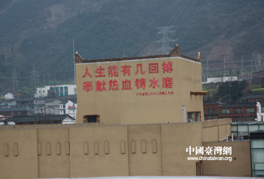 水磨鎮是由廣東佛山市對口支援重建的,這是援建者留下的誓言。(中國臺灣網 蕪同 攝)