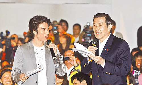馬英九(右)與偶像歌手王力宏(左)在臺灣清華大學對談夢想造就軟實力。圖片來自網絡