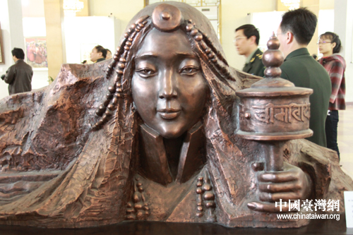 “4·14”玉樹地震一周年美術、書法、攝影展作品《祈福》。中國臺灣網 馮江 攝