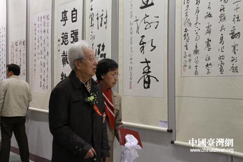 一位老人在家人的攙扶下觀看攝影展。中國臺灣網 馮江 攝