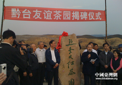 臺(tái)灣中華茶文化學(xué)會(huì)理事長(zhǎng)范增平先生參加黔臺(tái)友誼茶園揭牌儀式(貴定縣臺(tái)辦 楊玉霞 攝)