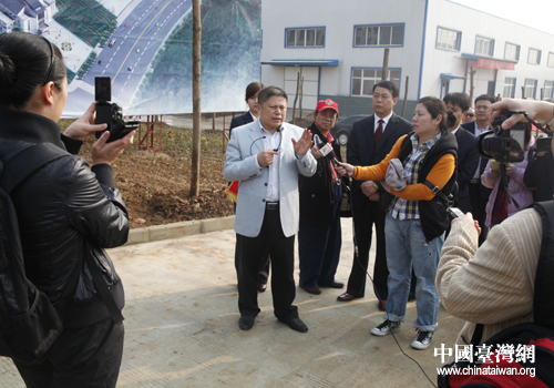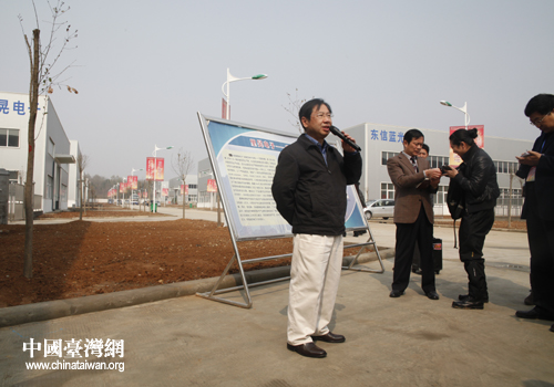信陽工業城區臺資企業華殷集團負責人向兩岸記者介紹企業情況(中國臺灣網 吳捷 攝)
