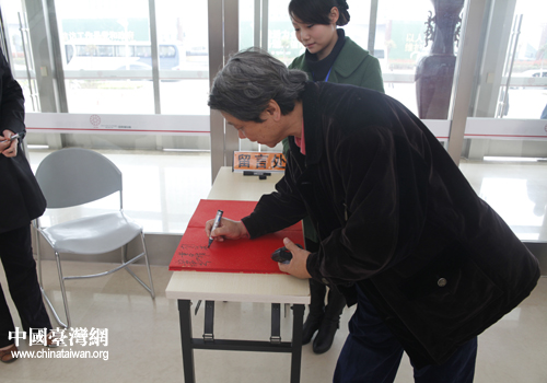 參觀信陽博物館,臺灣媒體記者題名留念(中國臺灣網 吳捷 攝)