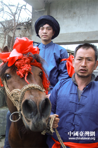 新郎騎上高頭大馬,帶領(lǐng)迎親隊(duì)伍趕往新娘家。(中國(guó)臺(tái)灣網(wǎng) 陳佳慧 攝)