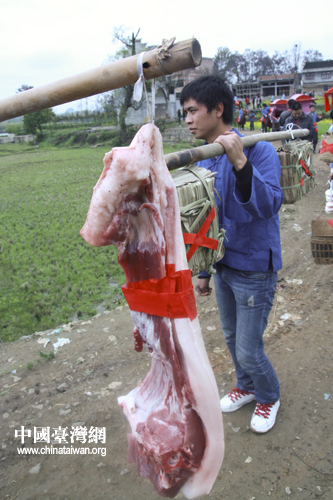 迎親隊伍帶著豐厚的聘禮走過田間小路。(中國臺灣網 陳佳慧 攝) 羞澀的新娘在閨房中等候新郎到來。(中國臺灣網 陳佳慧 攝) 新娘由弟弟背著離開閨房,她用布巾蒙臉,痛哭著走向花轎。(中國臺灣網 陳佳慧 攝)
