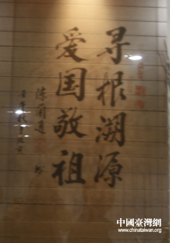 臺灣高雄市長陳菊參觀根親文化博物館時的題詞(中國臺灣網 吳捷 攝)