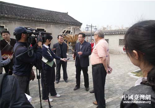 參觀陳氏將軍祠,臺灣《大愛電視臺》欄目組特邀祠堂負責人與臺灣政風新聞電子報岳先生分別用固始土話與客家話對從單字到詞到句依次進行了對比讀說(中國臺灣網 吳捷 攝)