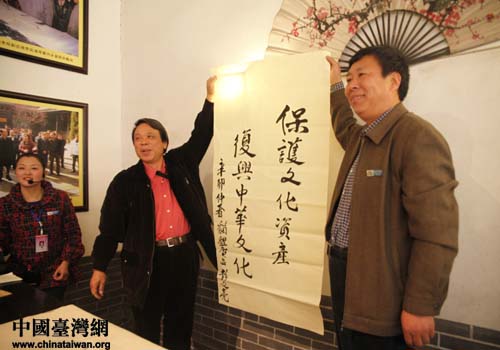 兩岸記者參觀河南南陽內鄉縣衙,體驗中華文化,臺灣記者揮墨倡復興(中國臺灣網 吳捷 攝)