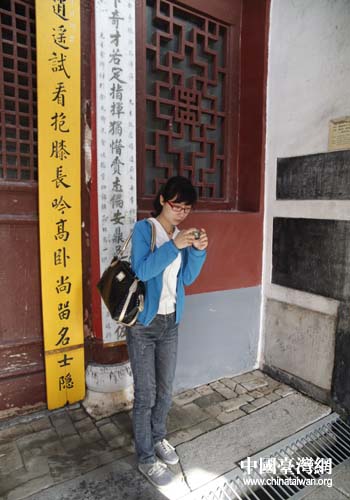 拍攝楹聯碑刻(中國臺灣網 吳捷 攝)