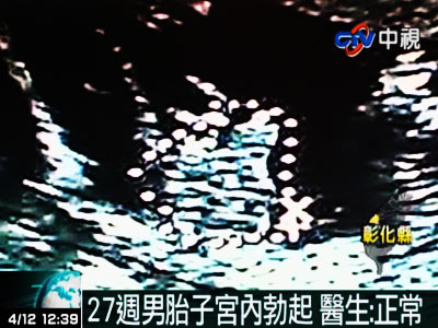 圖為產檢時拍下的男胎兒自慰的照片,醫生稱男胎兒自慰正常,但能拍下這個畫面實屬罕見。圖片來源:臺灣中視電視臺
