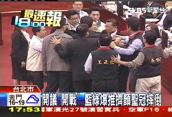 臺北市議會開議首日,藍綠議員展開群戰。圖片來源:臺灣TVBS電視臺