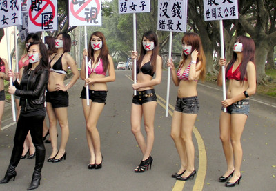 8名辣妹上街舉牌抗議。圖片來(lái)源:臺(tái)灣“今日新聞網(wǎng)”