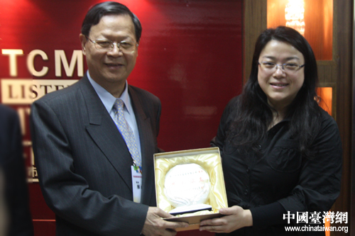 貴州同濟堂藥業同臺灣來賓交換禮物(中國臺灣網 王曉蕊 攝)