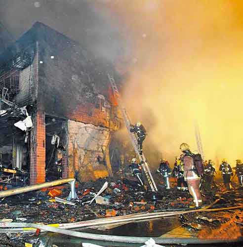 新興堂香鋪昨晚發(fā)生爆炸,現(xiàn)場幾乎被炸成廢墟,上百名警消到場滅火搶救。圖片來自網(wǎng)絡