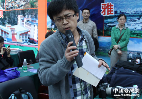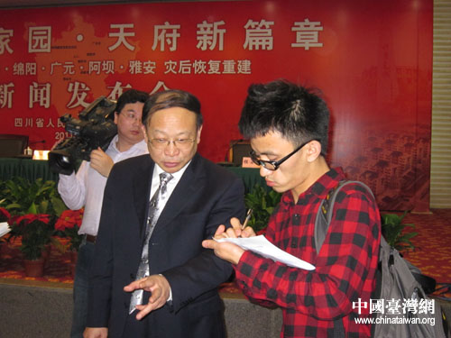 提問環節,網媒記者向四川重災市州負責人詢問災區重建工作進展。(中國臺灣網 朱毅 攝)