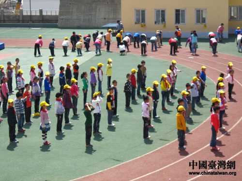 漢源富林鎮(zhèn)第一小學(xué)的孩子們正在上體育課。(中國(guó)臺(tái)灣網(wǎng) 朱毅 攝)