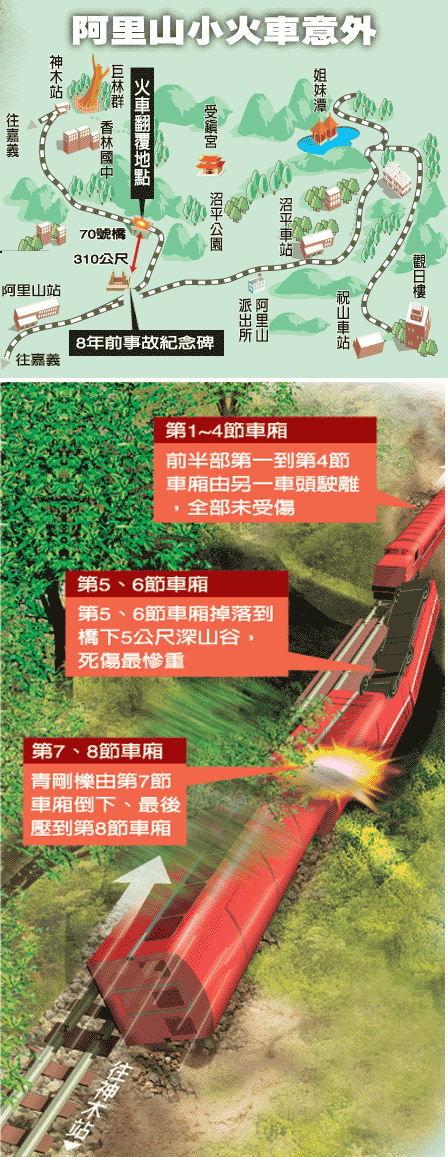組圖:阿里山小火車翻覆 5名陸客罹難107人傷