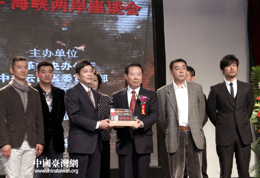 海協(xié)會副會長王在希代表劇組向中國人民抗日戰(zhàn)爭紀(jì)念館贈送了電視劇《中國遠(yuǎn)征軍》珍藏版和歷史資料。(中國臺灣網(wǎng) 普燕 攝)