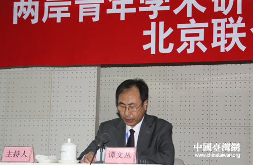 北京聯合大學臺灣研究院常務副院長兼黨支部書記譚文叢主持開幕式。(中國臺灣網 李杰 攝)