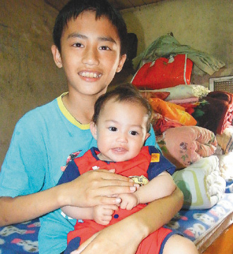 讀小學6年級的長子彭孟毅很會照顧弟妹,但他說,爸媽一直生,他有點累了。圖片來源:臺灣《聯合報》 第1頁第2頁第3頁