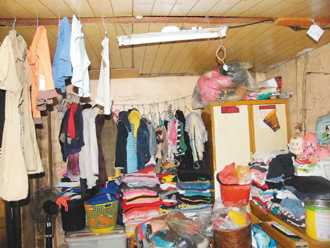 彭克勇夫婦與8個孩子住在不到十坪的房子里,堆滿孩子衣物。圖片來源:臺灣《聯合報》