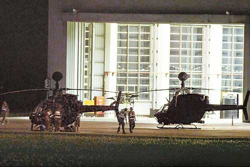 “5·11末日”前夕,臺陸軍航特部昨天21:07罕見地將近百架直升機移到露天機坪停放。圖片來自網絡
