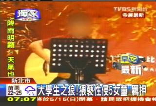 25歲的李姓嫌犯,是臺灣某科技大學的學生,曾參加大學歌唱比賽,彈吉展露才華。但令人沒想到的是,李姓大學生竟然涉嫌猥褻及性侵5名女童。