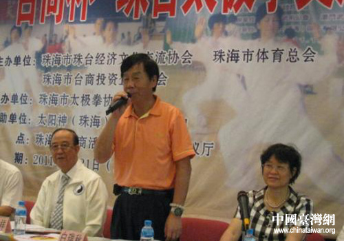 中國臺灣網5月24日廣州消息 日前,廣東省珠海市珠臺經濟文化交流協會、珠海市體育總會、珠海市臺商投資企業協會主辦的2011“臺商杯”珠臺太極拳交流大會在珠海隆重開幕。廣東省海峽兩岸交流促進會駐會副會長白瑞秋、促進會秘書長李淑珊、廣東省市臺辦相關負責人、主辦單位領導、珠臺港澳太極拳界人士等300人出席了開幕式。