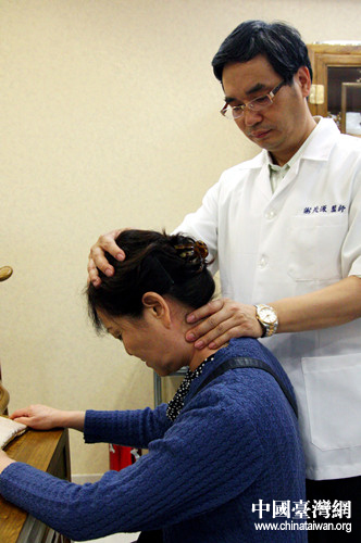 謝茂源醫(yī)師為患者做理療(中國臺(tái)灣網(wǎng) 劉承思 攝)