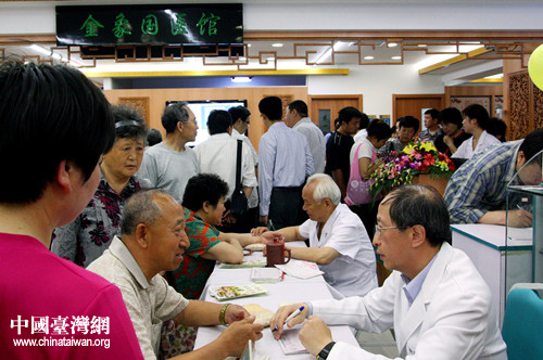 何嘉文醫(yī)師為患者診脈(中國臺(tái)灣網(wǎng) 劉承思 攝)