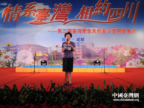四川省人民政府副省長黃彥蓉在開營儀式上致辭。圖片來源:四川省臺辦