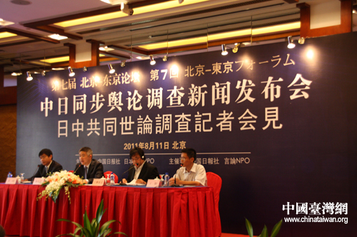中國(guó)日?qǐng)?bào)社代表和日本言論NPO代表公布第七次“中日關(guān)系輿論調(diào)查”結(jié)果并回答記者提問。(中國(guó)臺(tái)灣網(wǎng) 馮江 攝)