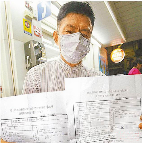 陳老板持控告王姓、陳姓女子的報案三聯單,仍堅信彼此有真愛,真是好傻好天真!圖片來源:臺灣媒體