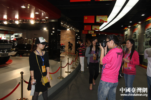 美好吉林—全國網(wǎng)絡媒體專題采風活動記者在“一汽”轎車博物館拍照留念。(中國臺灣網(wǎng) 吳斌 攝)
