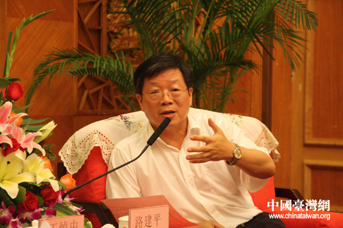 中共湖南省委常委、省委宣傳部部長路建平與采訪團成員親切交談。(中國臺灣網 王怡然 攝)