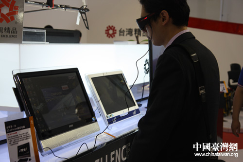 參展觀眾體驗超逼真3D觸控一體機。(中國臺灣網 吳斌 攝)