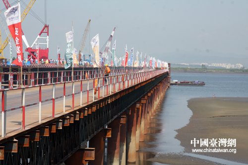 在建中的鴨綠江界河公路大橋。(中國臺灣網 馬迪 攝)