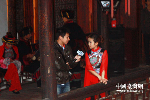 臺(tái)灣記者采訪土家民俗風(fēng)情。(中國(guó)臺(tái)灣網(wǎng) 王曉蕊 攝)