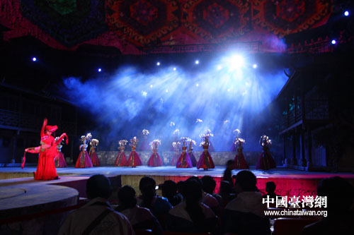 兩岸記者觀看“夷水利川”歌舞表演。(中國(guó)臺(tái)灣網(wǎng) 王曉蕊 攝)