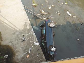 江姓婦人向警方表示,早上駕車出門,由南向北經過該路口,由西向東行駛的黑色轎車突然竄出,她反應不及撞上,黑色轎車失控撞斷河岸護欄后掉落河床。