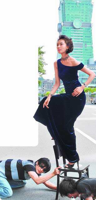 報(bào)道稱(chēng),志玲姐姐身高174公分,要與臺(tái)北101大樓比高,足蹬逾10公分的高跟鞋還不夠,單腳再跨在椅背上,工作人員不斷以板子或椅子墊高,一度因風(fēng)太大,工作人員擔(dān)心她摔落,伏趴著扶住椅腳,林志玲仍神情自若地?cái)[出萬(wàn)種風(fēng)情,被封為“林大膽”。(中國(guó)臺(tái)灣網(wǎng) 劉海偉)