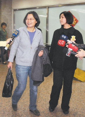 民進黨主席蔡英文敗選后,昨天前往臺北市競選辦公室與幕僚開會,隨后離開。(圖片來源于:臺灣《聯(lián)合報》)