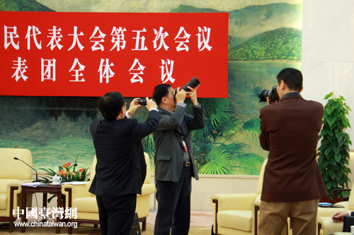 “臺灣廳進入了你的鏡頭,你也成了別人視野里的風景”。國為代表們在臺灣廳拍攝留念。(中國臺灣網 王偉 攝)