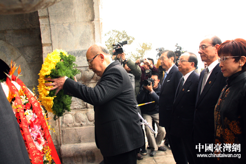 22日上午10時20分許,中國國民黨榮譽主席吳伯雄率領的國民黨大陸訪問團一行攀抵衣冠冢。(中國臺灣網 楊麗 攝)