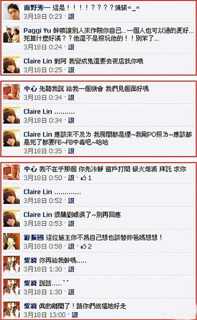 網(wǎng)絡(luò)直播燒炭 對話節(jié)錄。圖片來自臺媒