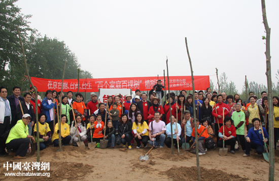參與此次“百個家庭百棵樹”植樹活動的臺胞、臺商、臺生集體大合影。(中國臺灣網 王思羽 攝)