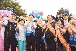 鹿港鎮(zhèn)長補選選前最后一天,國民黨參選人蔡明忠夫婦(右)由國民黨秘書長林中森(左起)、“立委”王惠美、彰化縣長卓伯源及“立法院長”王金平等人陪同在市區(qū)拜票。(圖片來源:臺灣《中國時報》)